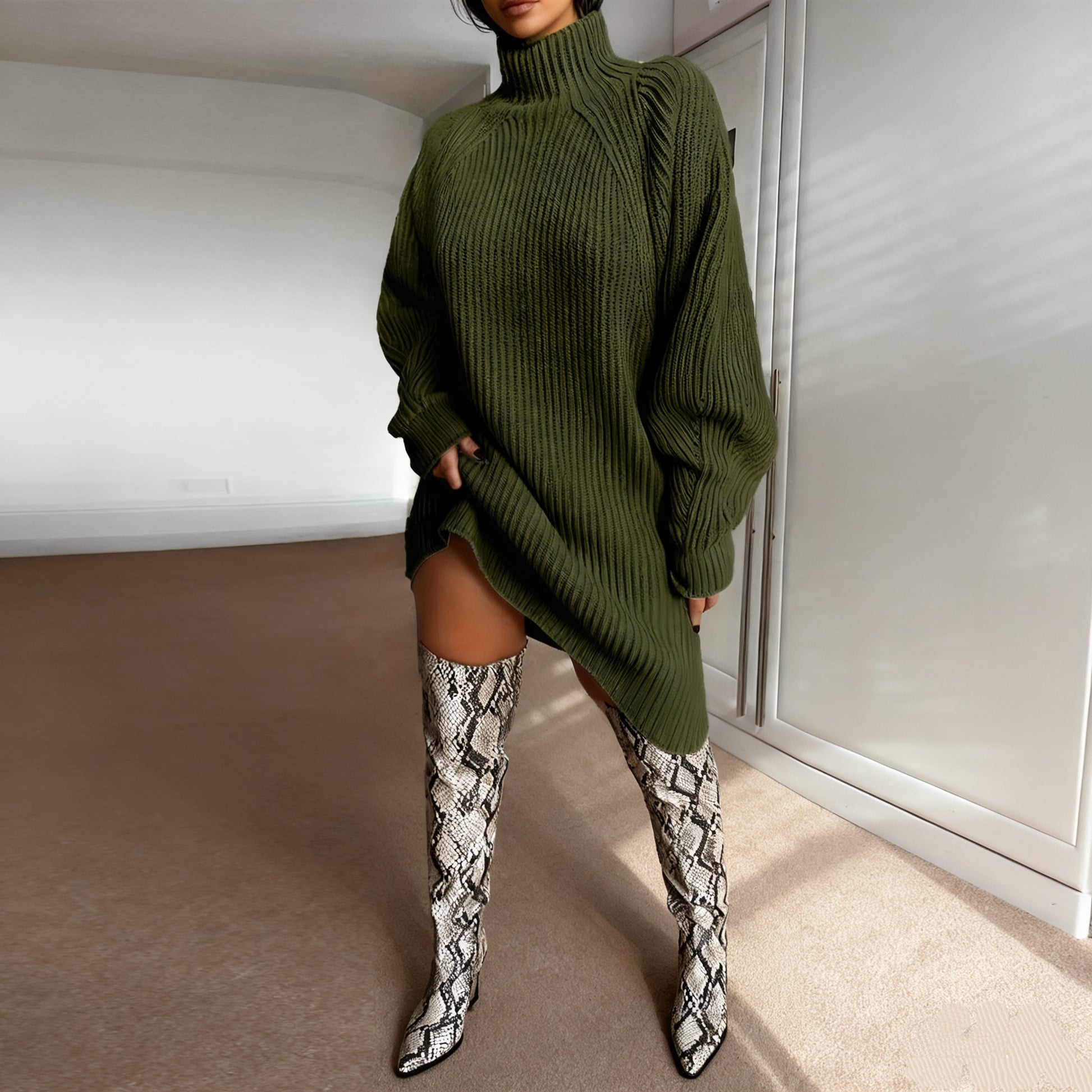 Plus Size Women's High Neck Casual 100% Acrylic Stretchy Solid Color Sweater